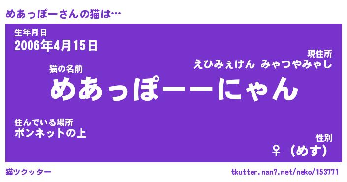 | 肩書あだ名 | 『めあっぽー社長』『めあっぽー大統領』 |