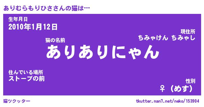 | ヘコむあだ名 | 『ありにゅー』『豆乳』『ありぷりん』 |