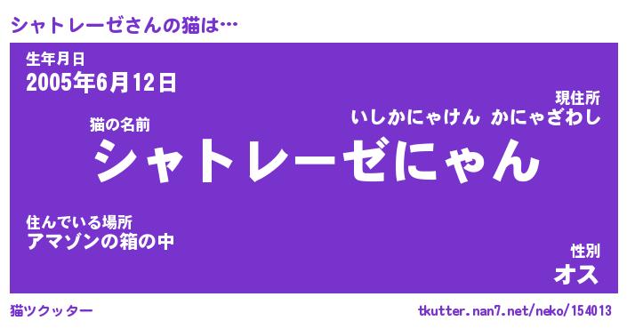 | ポケモン風あだ名 | 『シャチュウ』『シャトダネ』 |