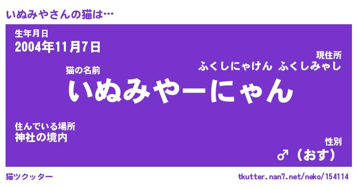 | 意味不明あだ名 | 『ペロリンいぬみや』『永久保存いぬみや』 |