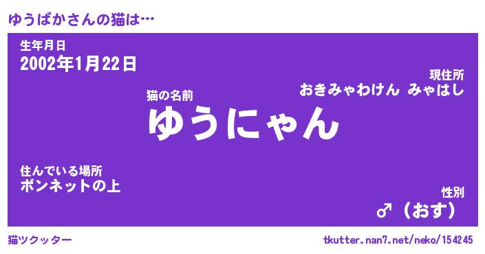 | ポケモン風あだ名 | 『ユウチュウ』『ユウバダネ』 |