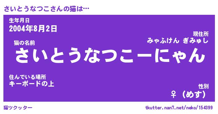 | 生年月日? …「くろねこ」 | 8月01日 10:16 |