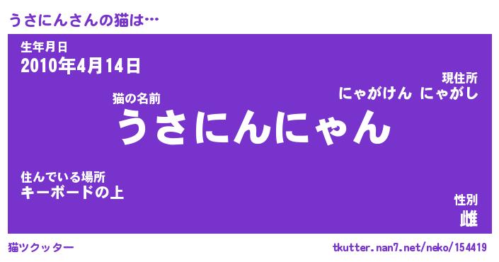 | ポケモン風あだ名 | 『ウサチュウ』『ウサニダネ』 |