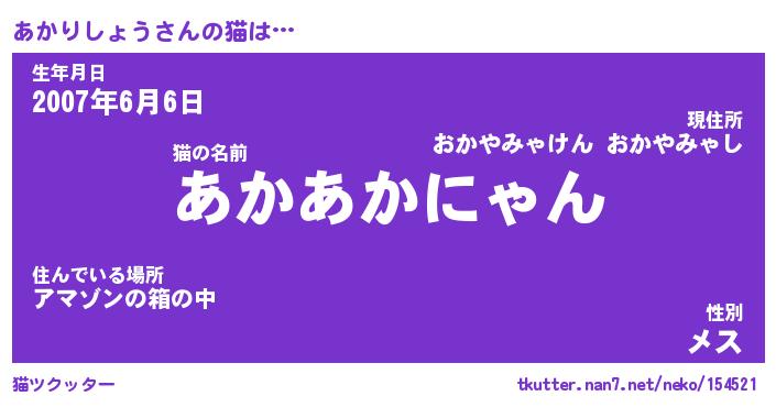 | ツイッター | あかりしょうさんのツイッターID『dendenmushi_nyan』 |