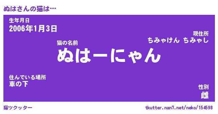 | ポケモン風あだ名 | 『ヌハチュウ』『ヌハダネ』『ヒヌハ』 |