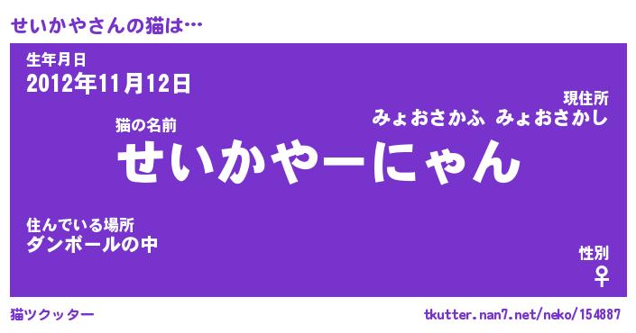 | 意味不明あだ名 | 『ペロリンせいかや』『永久保存せいかや』 |