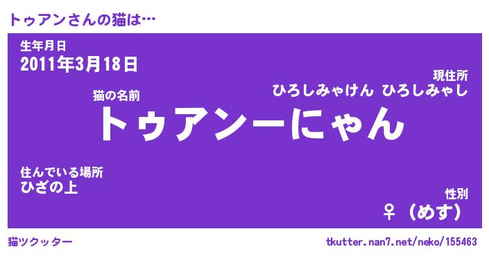 | 意味不明あだ名 | 『ペロリントゥアン』『永久保存トゥアン』 |