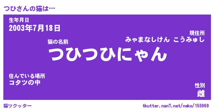 | ポケモン風あだ名 | 『ツヒチュウ』『ツヒダネ』『ヒツヒ』 |