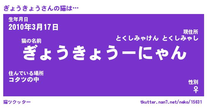 | ヒーロー風カッコイイあだ名 | 『スーパーギョウキョウ』『銀牙騎士ギョ』 |