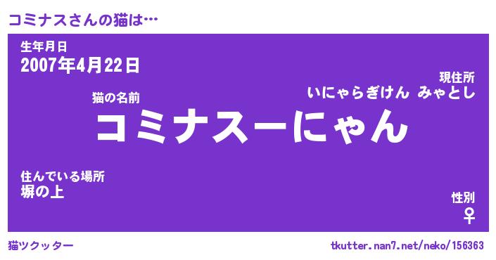 | 意味不明あだ名 | 『ペロリンコミナス』『永久保存コミナス』 |