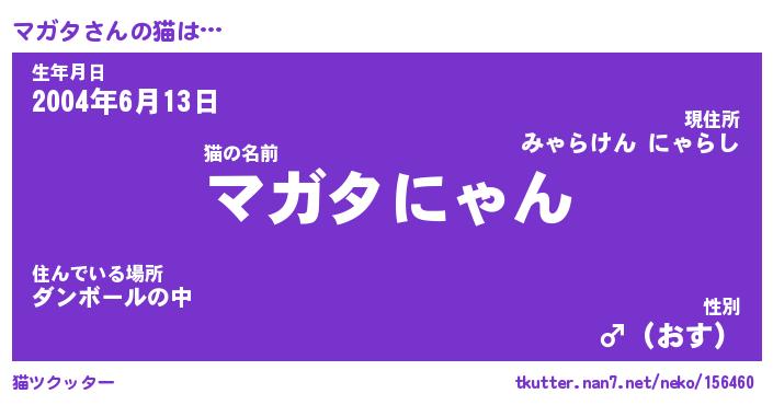 | ポケモン風あだ名 | 『マガチュウ』『マガタダネ』 |