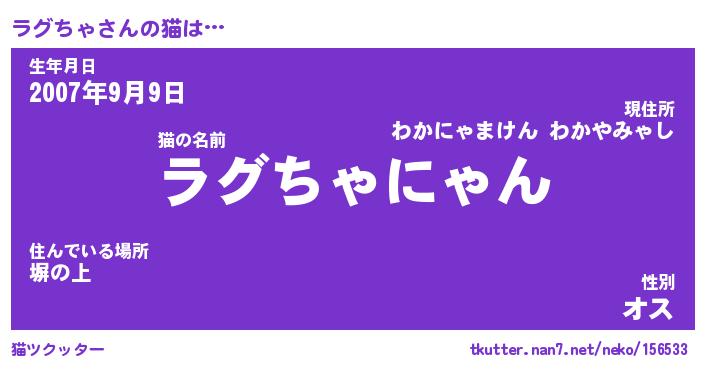 | 肩書あだ名 | 『ラグちゃ御曹司』『ラグちゃ国家主席』 |