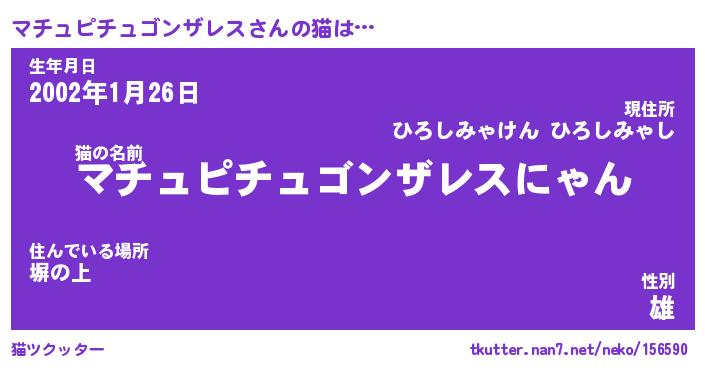 | 男性向けラノベタイトル風あだ名 | 『マチュピチュゴンザレスの憂鬱』 |