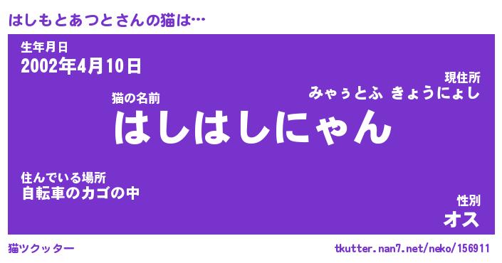 | 生年月日? …「くろねこ」 | 8月01日 10:16 |