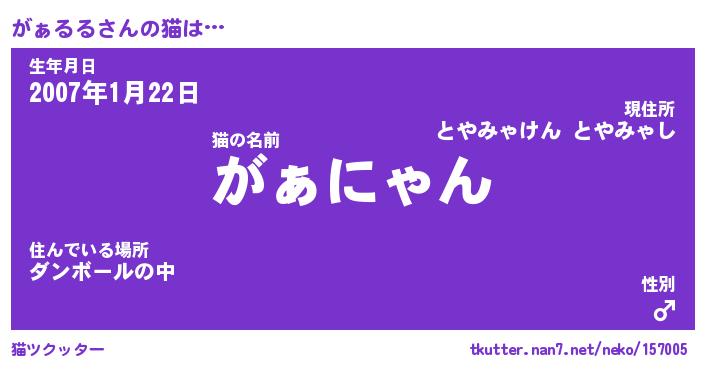 | 2回繰り返すあだ名 | 『がぁがぁ』『ががぁぁ』『ぬるぬる』 |