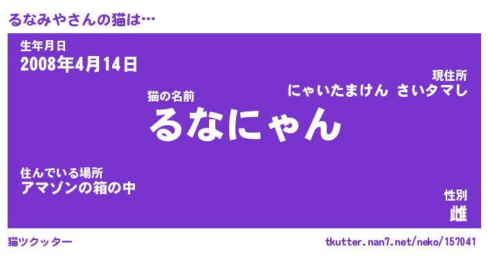 | 意味不明あだ名 | 『ペロリンるなみや』『永久保存るなみや』 |