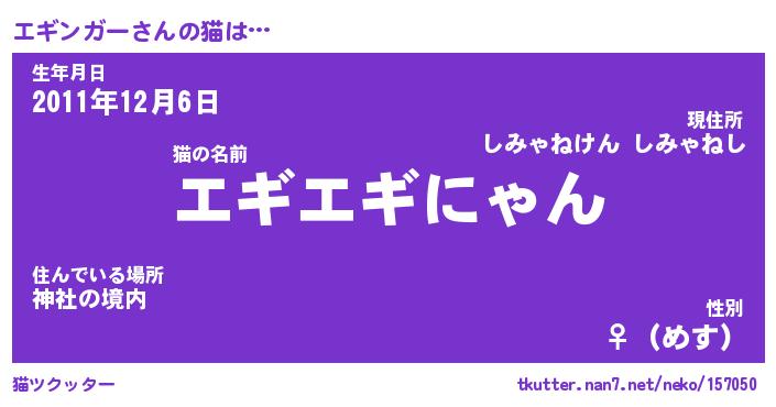 | 肩書あだ名 | 『エギンガー社長』『エギンガー総理大臣』 |