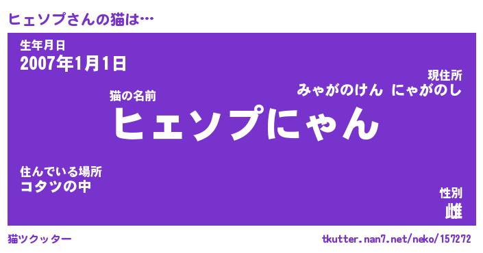 | ポケモン風あだ名 | 『ヒェチュウ』『ヒェソダネ』 |