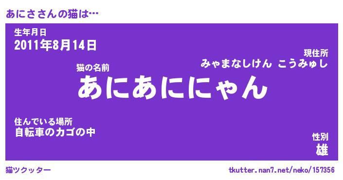 | ポケモン風あだ名 | 『アニチュウ』『アニサダネ』 |