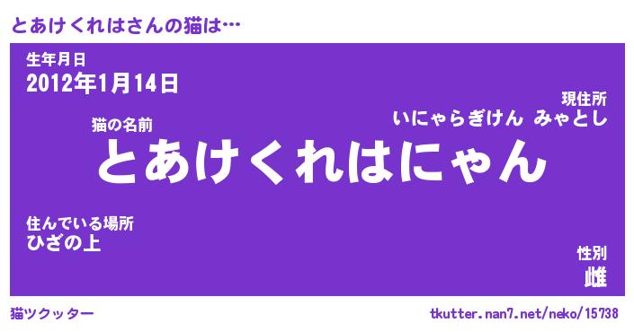 | 生年月日? …「くろねこ」 | 8月01日 10:16 |