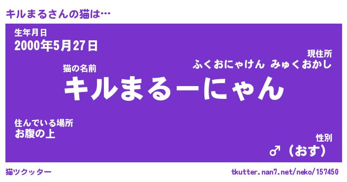 | 欧米人風あだ名 | 『マイケルキルまる』『ウサインキルまる』 |
