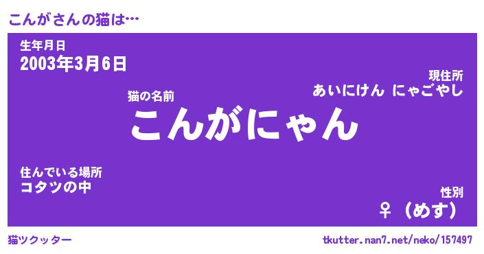 | 意味不明あだ名 | 『ペロリンこんが』『こんがフォーエバー』 |