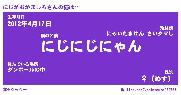 | ファンタジー風あだ名 | 『ニジフェル』『ファントムニジス』 |