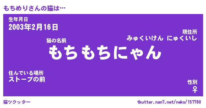 | 意味不明あだ名 | 『ペロリンもちめり』『永久保存もちめり』 |