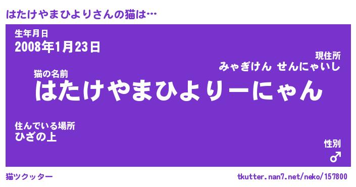 | ツイッター | はたけやまひよりさんのツイッターID『namakemono_star』 |