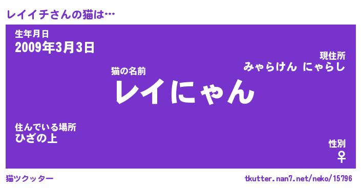 | ヘコむあだ名 | 『レイにゅー』『なまこ酢』『レイお』 |