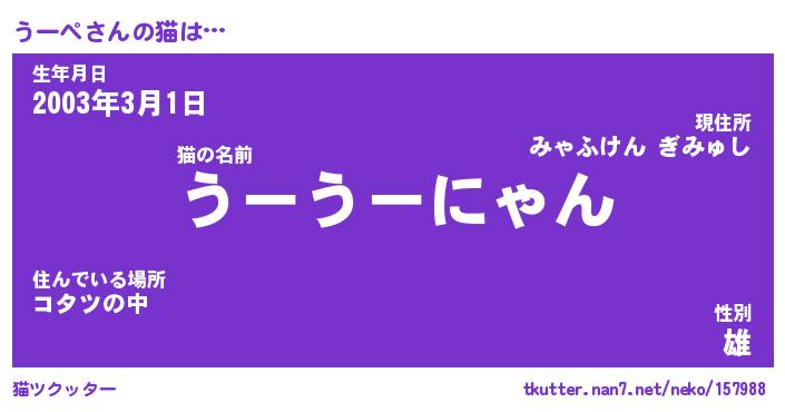 | ポケモン風あだ名 | 『ウーチュウ』『ウーペダネ』 |