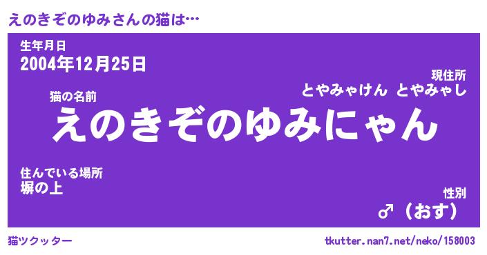 | ツイッター | えのきぞのゆみさんのツイッターID『konnyaku_kun』 |