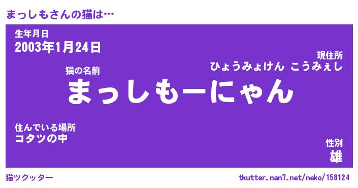 | 意味不明あだ名 | 『ペロリンまっしも』『永久保存まっしも』 |
