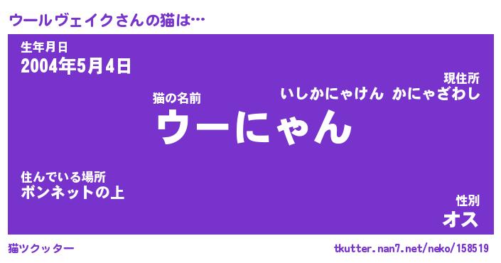 | ポケモン風あだ名 | 『ウーチュウ』『ウールダネ』 |