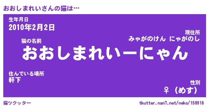 | 生年月日? …「くろねこ」 | 8月01日 10:16 |