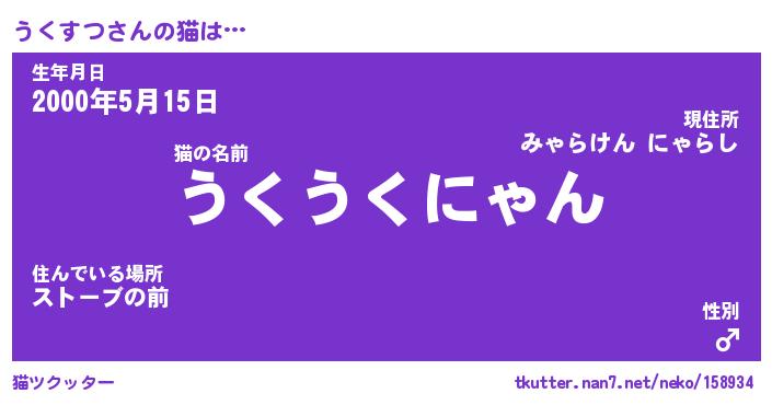 | 意味不明あだ名 | 『ペロリンうくすつ』『永久保存うくすつ』 |