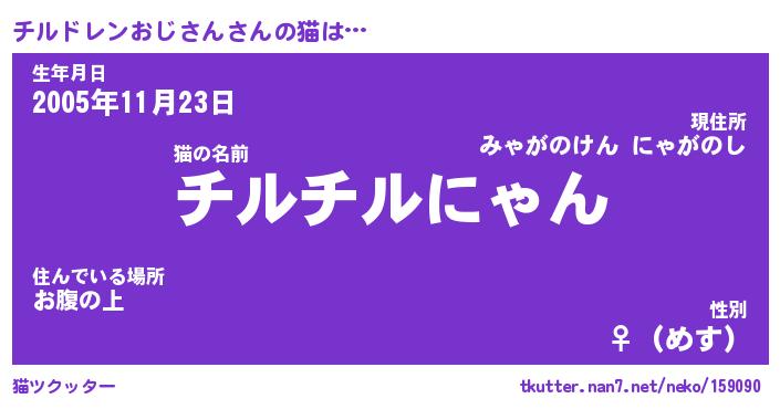 | 2回繰り返すあだ名 | 『チルチル』『チチルル』『おやおや』 |