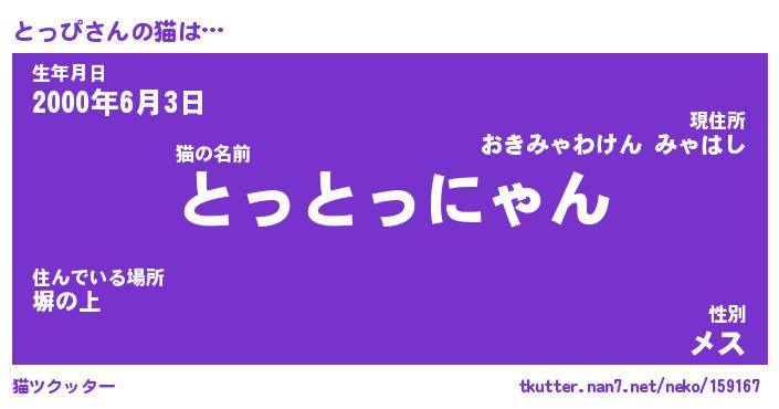 | 生年月日? …「くろねこ」 | 8月01日 10:16 |
