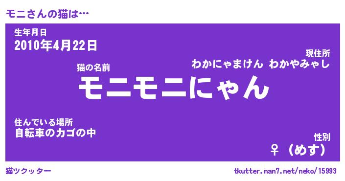 | 意味不明あだ名 | 『ペロリンモニ』『モニフォーエバー』 |