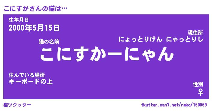 | 意味不明あだ名 | 『ペロリンこにすか』『永久保存こにすか』 |
