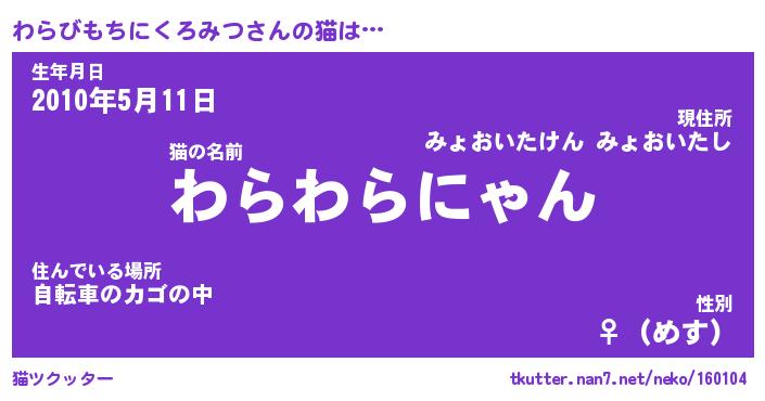 | 生年月日? …「くろねこ」 | 8月01日 10:16 |