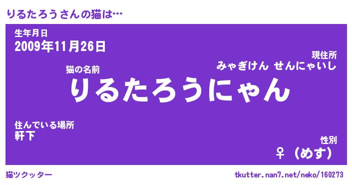 | 女子向けラノベタイトル風あだ名 | 『(仮)りるたろうのやんごとなき事情』 |