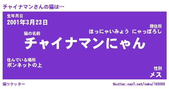 | ヒーロー風カッコイイあだ名 | 『スーパーチャイナマン』『天弓騎士チャ』 |