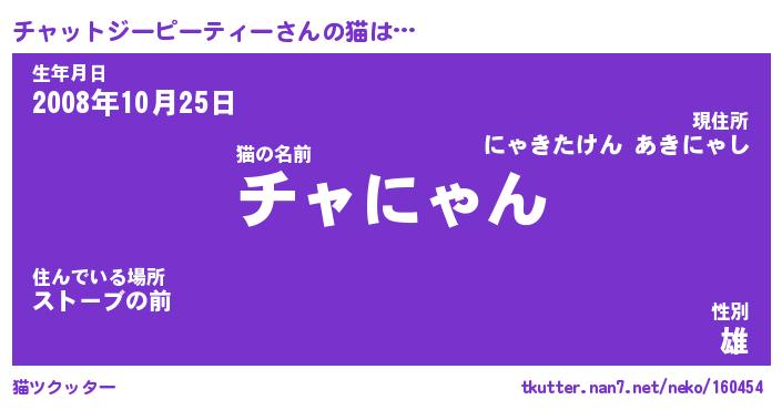 | 意味不明あだ名 | 『ペロリンチャットジーピーティー』 |