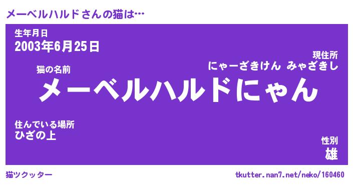 | 男性向けラノベタイトル風あだ名 | 『メーベルハルドの憂鬱』 |