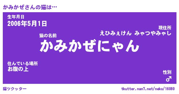 | 意味不明あだ名 | 『ペロリンかみかぜ』『永久保存かみかぜ』 |