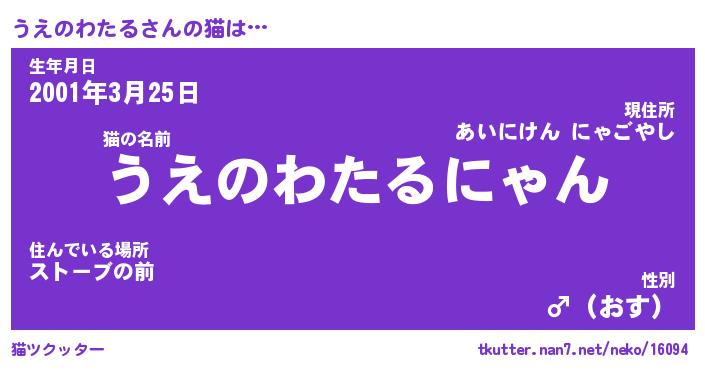 | ポケモン風あだ名 | 『ウエチュウ』『ウエノダネ』 |
