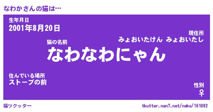 | 2回繰り返すあだ名 | 『なわなわ』『ななわわ』『なあなあ』 |