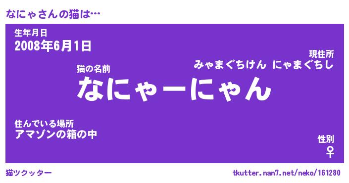 | ヒーロー風カッコイイあだ名 | 『スーパーナニャ』『ウルトラなにゃマン』 |