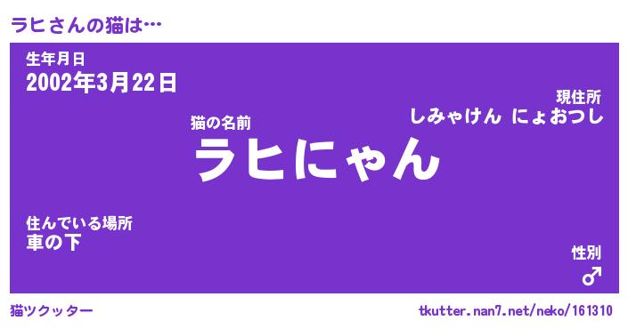 | ポケモン風あだ名 | 『ラヒチュウ』『ラヒダネ』『ヒラヒ』 |